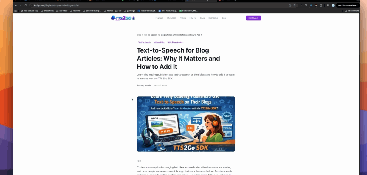 Our docs had a 30-second average time on page. After adding TTS, it jumped to over two minutes. People are actually consuming the content now.